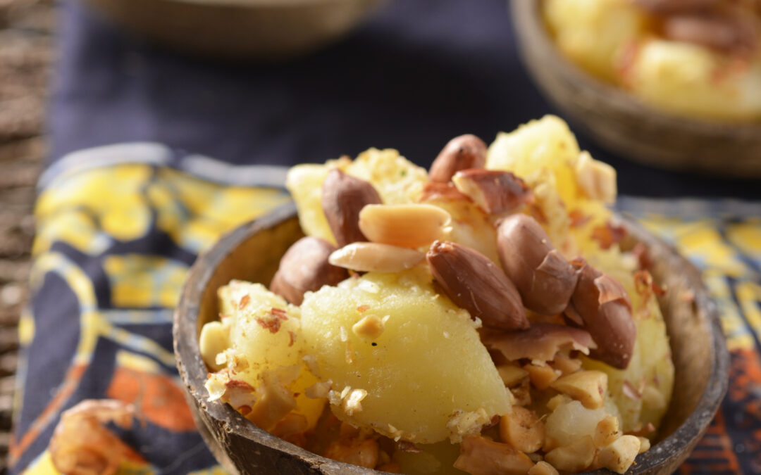 Potatoes served with peanuts