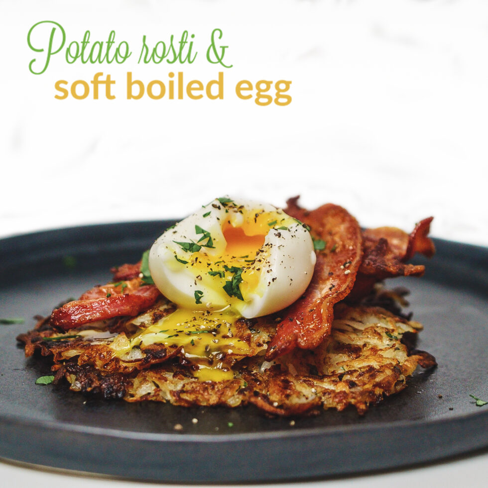 Potato rosti and soft boiled egg