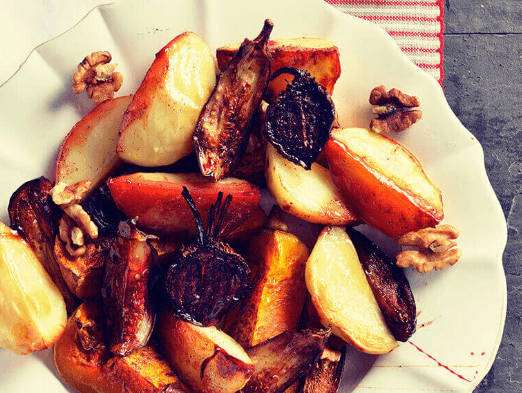 Cinnamon Honey Glazed Roasted Baby Butternut served with Roast Potatoes